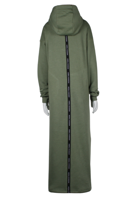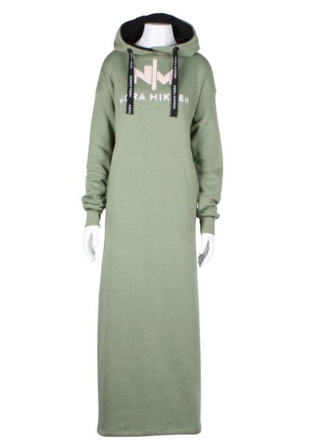 Pehmest ja hingavast trikotaažisegust (60% puuvillast, 40% polüestrist) valmistatud kleit pakub nii mugavust kui ka stiili igaks päevaks. See on disainitud praktilisust silmas pidades ja on varustatud kapuutsi ja funktsionaalsete taskutega. Külgedel olevad lõhikud võimaldavad mugavat liikumist. Rinnal on kontrastvärviga tikitud Nora Mikkeni logo, seljal jookseb Nora Mikkeni logoga must-valge seljalint.
